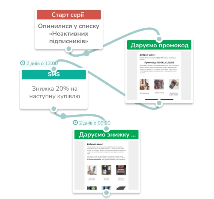 Налаштувати тригерні розсилки допоможуть такі українські сервіси, як SendPulse чи, до прикладу, eSputnik.