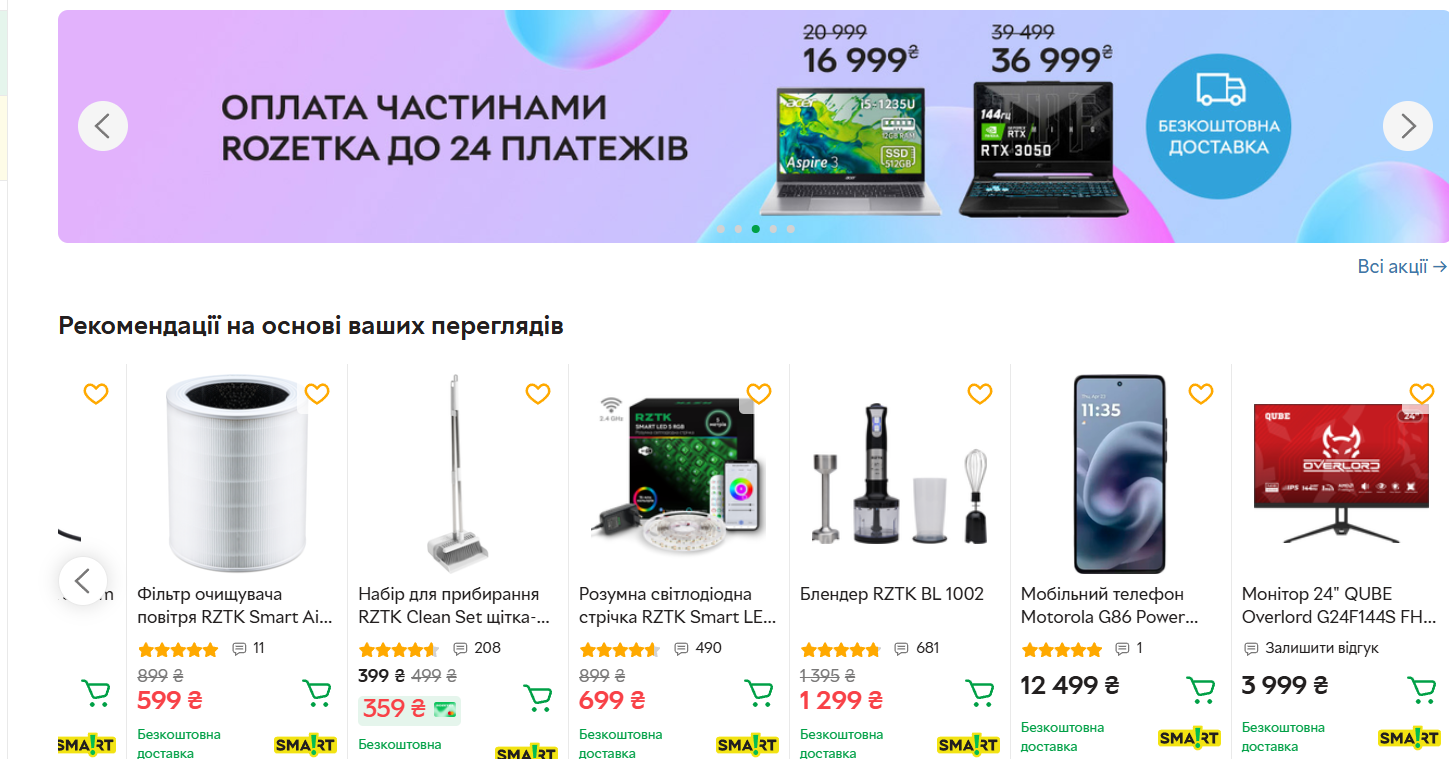 Персоналізовані рекомендації — це пропозиції товарів на сайті інтернет-магазину, які можуть зацікавити користувача. Завдяки вбудованому штучному інтелекту система персональних рекомендацій допомагає пропонувати покупцям саме ті товари, які найбільше відповідають їхнім інтересам. Вибір товарів відбувається на основі історії відвідувань і покупок користувача.