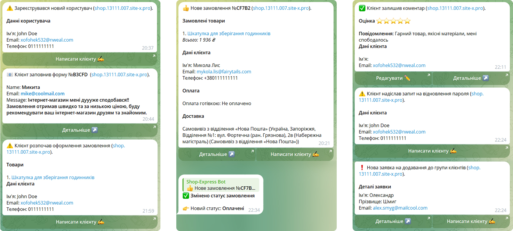 Чат-боти корисні не лише для комунікації з клієнтами — вони також суттєво спрощують життя менеджерам, автоматизуючи обробку замовлень та моніторинг активності користувачів. Наприклад, інтеграція Telegram-бота в інтернет-магазинах на платформі Shop-Express дозволяє: