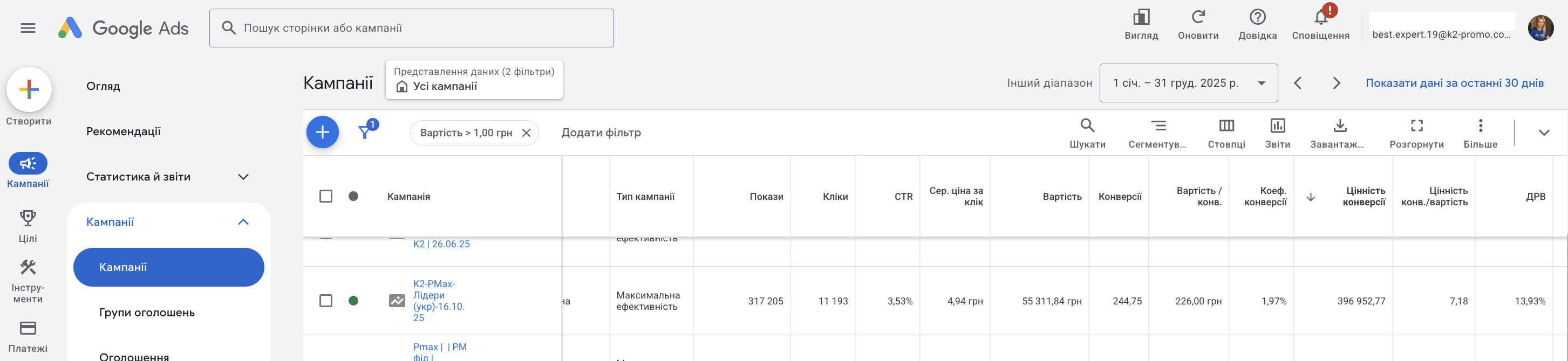 За 2025 рік у рекламному акаунті: