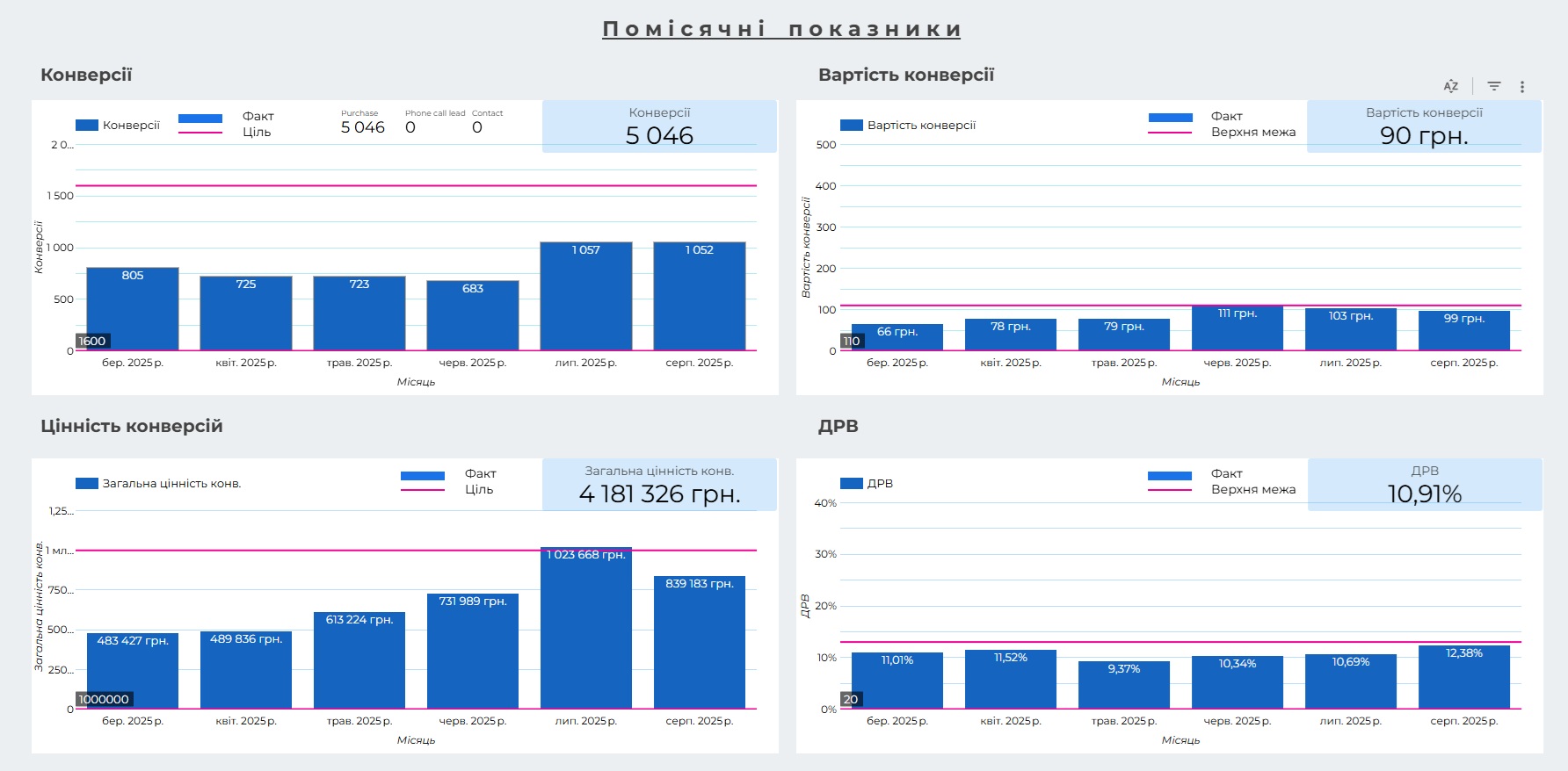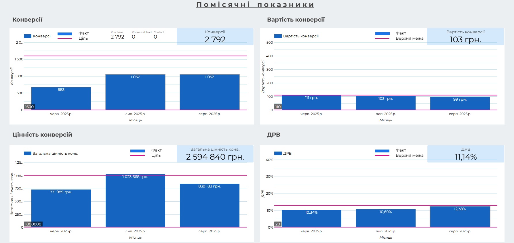За цей період загальна цінність конверсій склала 2 594 840 грн: