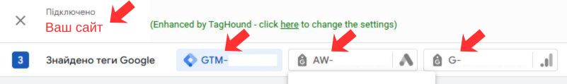 Для перегляду встановлених на сайті лічильників можна скористатись розширеннями TagHound або Tag Assistant.