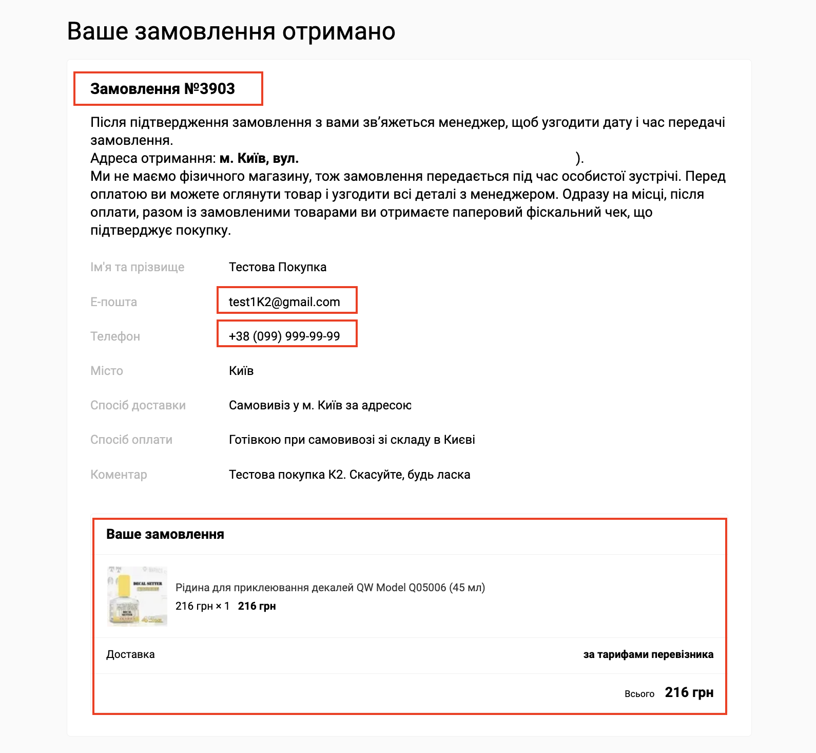 У новій вкладці відкривається сайт в режимі попереднього перегляду, де і необхідно оформити тестову покупку. Відкриваємо будь-який товар, додаємо його в кошик і виконуємо оформлення замовлення, заповнюючи всі дані, включаючи e-mail.